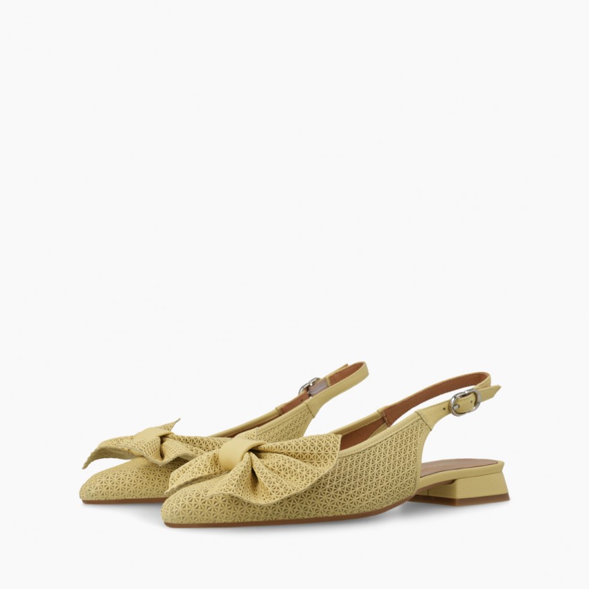 Bailarinas de mujer destalonadas BRO5258 de LODI en piel calada. Detalle de lazo en piel al tono. Diseño confeccionado con tacón de 2 cm de altura. Cierre en tira mediante hebilla metálica en lateral. Planta en piel. Incluye planta new gel para mayor comodidad en todas tus pisadas. Fabricado en España.