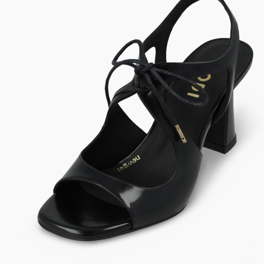 Sandalias de mujer en piel con cordonera
