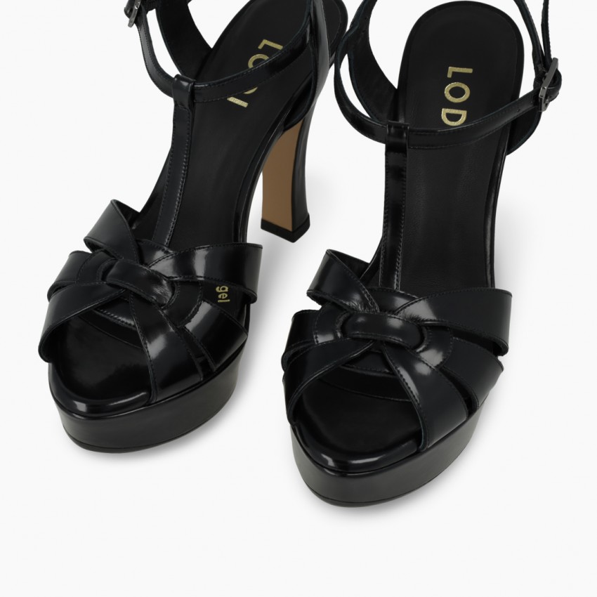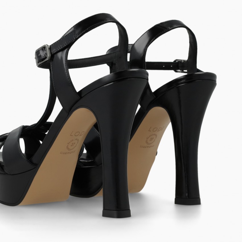 Sandalias de mujer con plataforma TARAN de LODI en piel. Detalle de pala con tiras cruzadas. Diseño confeccionado con tacón de 12.5 cm y plataforma de 3 cm de altura. Cierre en lateral mediante hebilla metálica. Punta semiafilada. Interior forrado en piel. Incluye planta new gel para mayor comodidad en todas tus pisadas. Fabricado en España