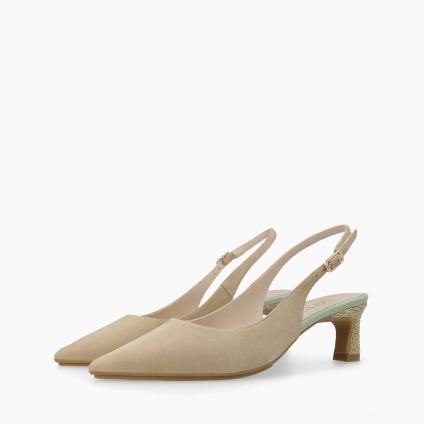 Zapatos de salón destalonados de mujer en ante con tacón efecto rafia